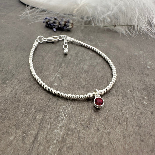 Personalised July Birthstone Bracelet for Birthday, Initial & Gem Crystal Charm in Sterling Silver