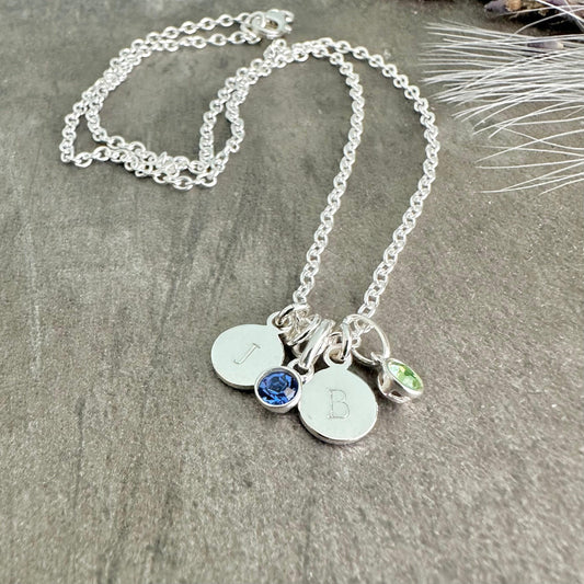 Personalised Crystal Birthstone Charm Necklace with Family Initials, Sentimental Gift for Mum