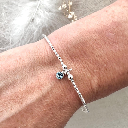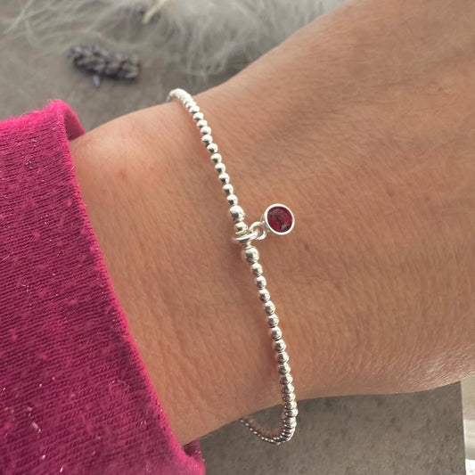 Sterling Silver Birthstone Bracelet with crystal charm, Christmas Gift for women