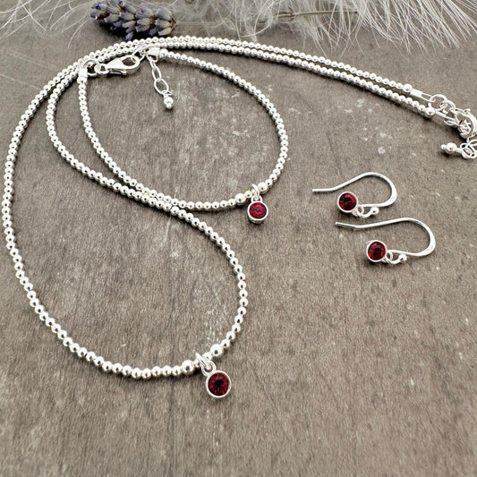 Dainty Crystal Birthstone Necklace Bracelet and Earrings in Sterling Silver