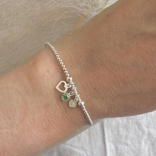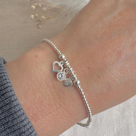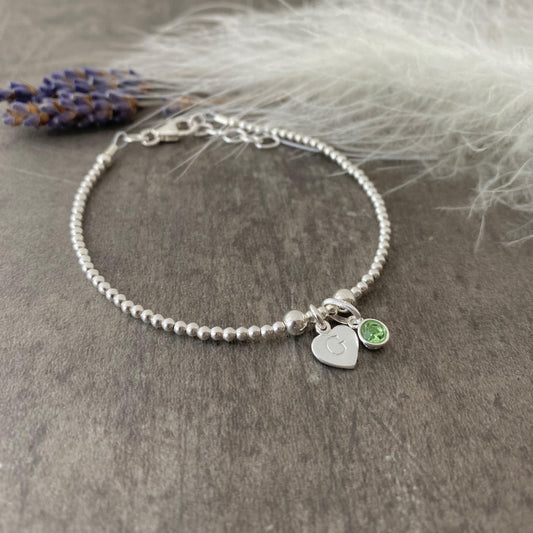 Personalised Bracelet with birthstone crystal and initial, Sterling Silver Keepsake Gift