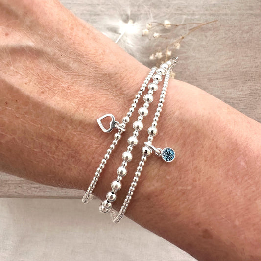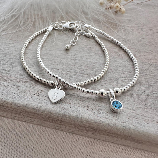 Sterling Silver Personalised Initial Bracelet Set, Crystal Birthstone Stacking Bracelet Set