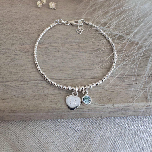 March Birthstone Bracelet, Milestone Birthday Gift with CZ crystal in sterling silver for 16th 18th 21st 30th 40th 50th 60th for women