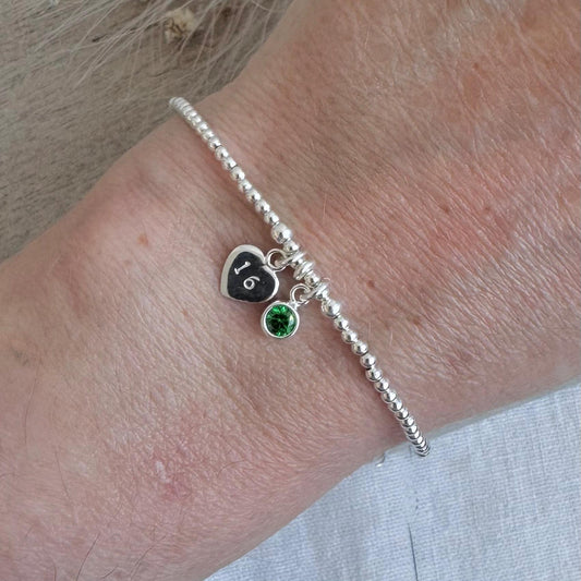 May Birthstone Bracelet, Milestone Birthday Gift with CZ crystal in sterling silver for 16th 18th 21st 30th 40th 50th 60th for women