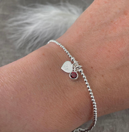 July Birthstone Bracelet for Milestone Birthday, Personalised Initial & Age in Sterling Silver for 16th 18th 21st 30th 40th or 50th