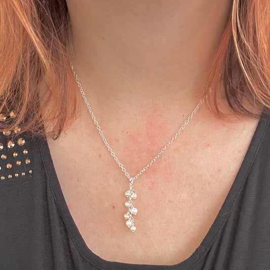 Dainty Pearl Cascade Necklace Sterling Silver, June Birthstone made to order