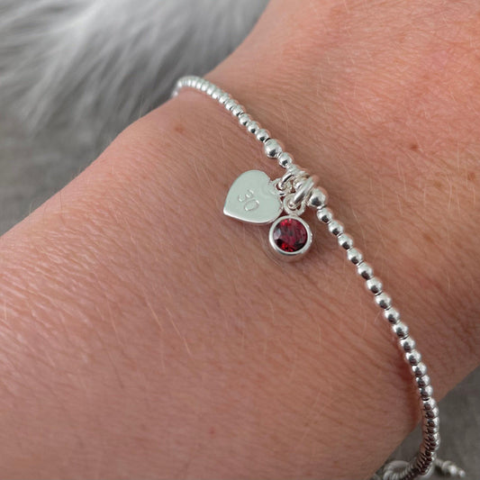 30th Birthday Milestone Gift, Dainty Bracelet with Cubic Zirconia Birthstone