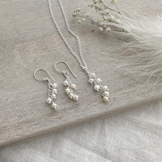Dainty Pearl Necklace Earring Set for birthday, June Birthstone and Sterling Silver Made to order jewellery gift for women