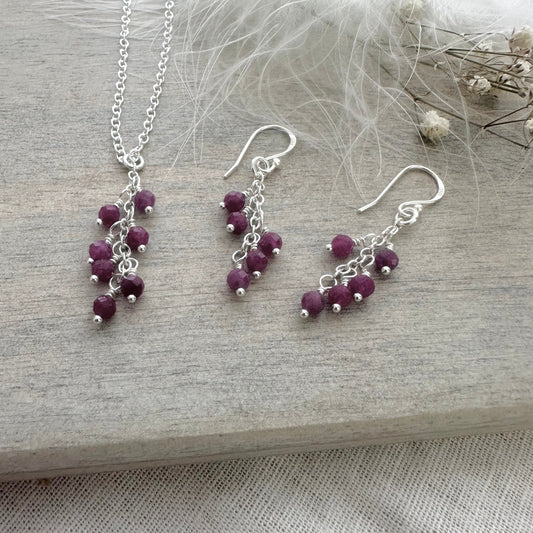 Ruby Necklace Earrings Set, July Birthstone Sterling Silver - Dainty Jewellery Gift for Women
