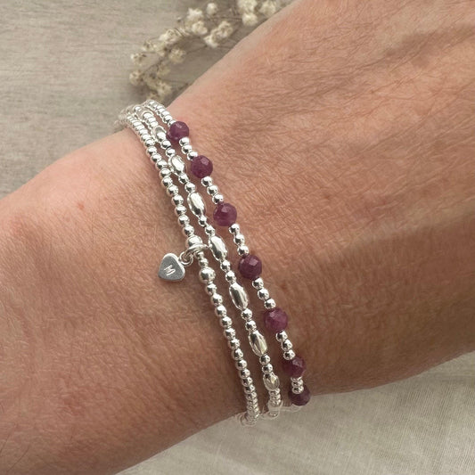 Personalised July Birthstone Ruby Bracelet Set, Dainty Sterling Silver Stacking Bracelets for Women