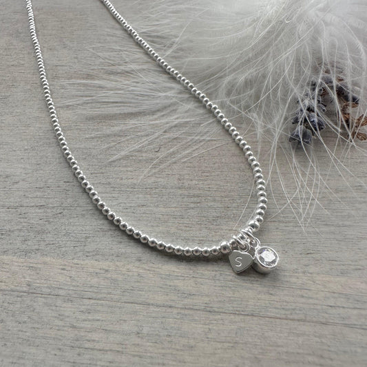 April Birthstone beaded necklace, personalised dainty Sterling Silver CZ Beaded Jewellery
