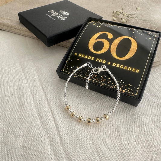 6 Decade Bracelet 60th Birthday Jewellery Gift for Her in Sterling Silver