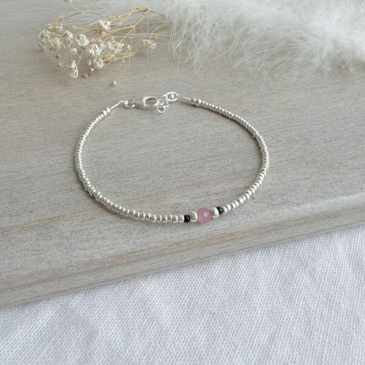Personalised Birthstone Bracelet, Dainty Silver Bracelet with Family Birthstones