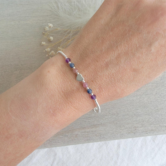Dainty Rainbow Bracelet, gemstones with sterling silver
