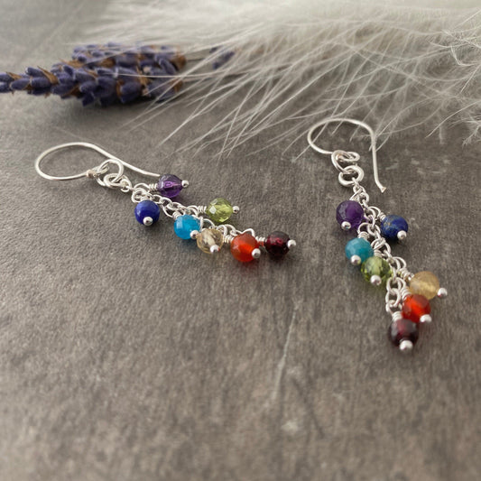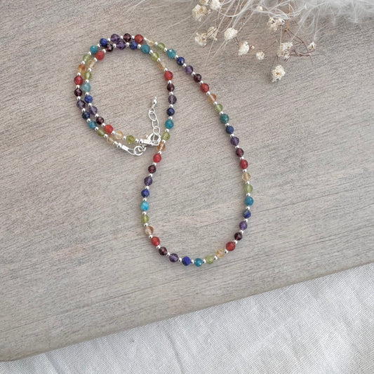 Rainbow Necklace, rainbow gemstones with sterling silver