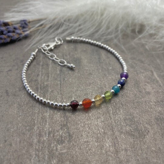 Dainty Rainbow Bracelet, gemstones with sterling silver