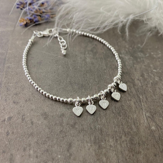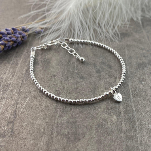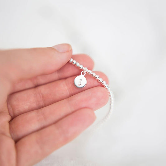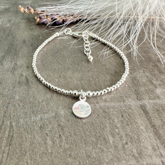 Sterling Silver Initial Disc Bracelet 3mm beads, Personalised Bracelet