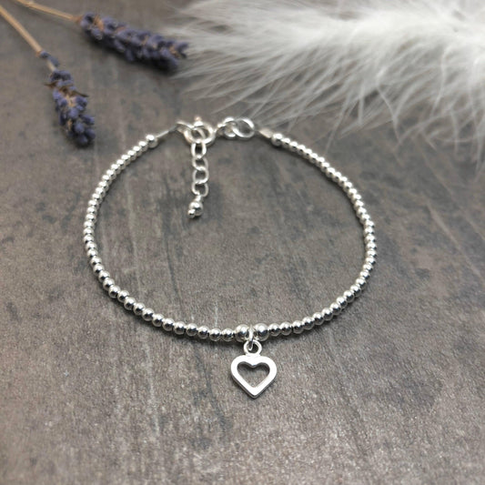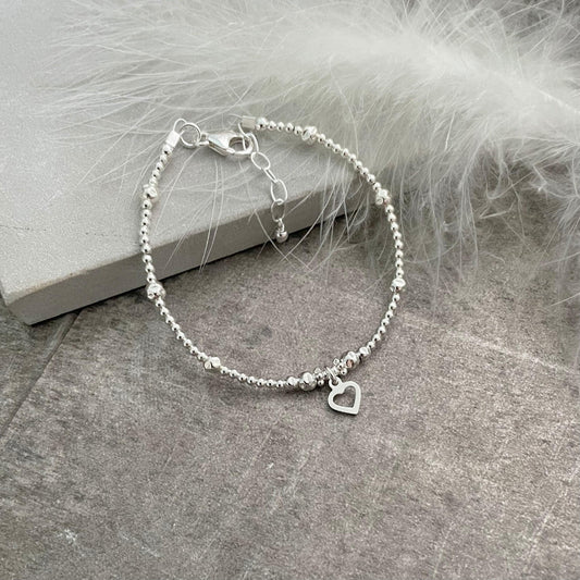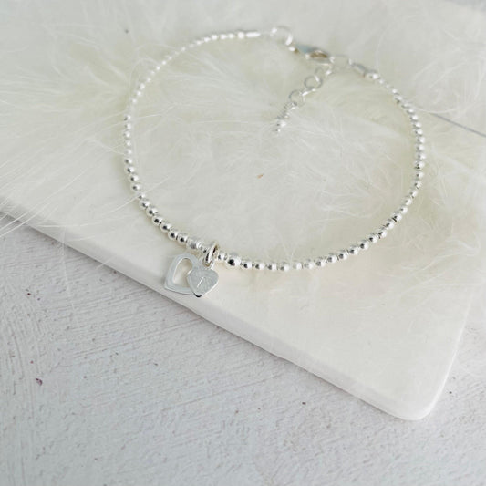 Delicate Open Heart Personalised Bracelet with initial in sterling Silver