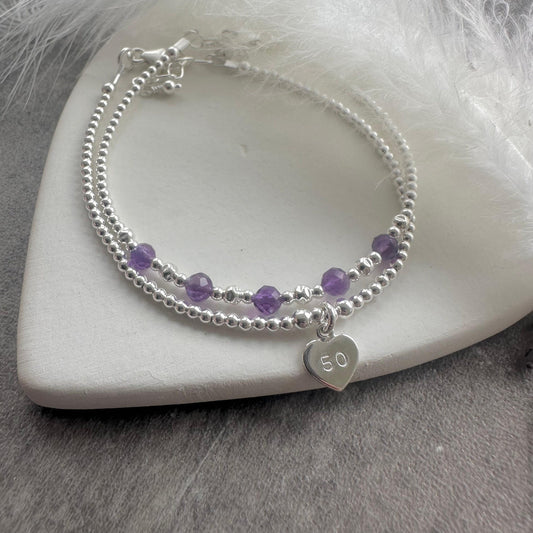 50th Birthday Gift 5 Beads 5 Decades Bracelet, Jewellery Gift for Her 50th in Sterling Silver
