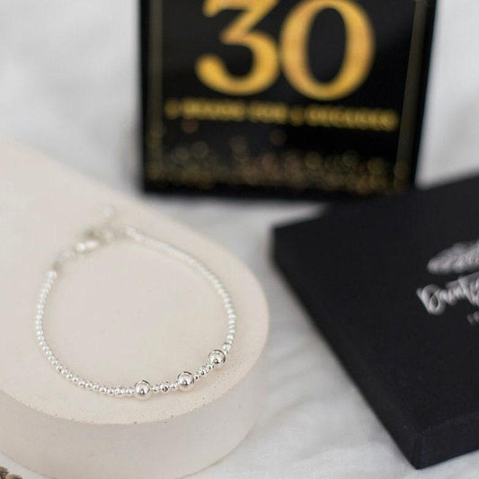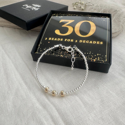 30th Birthday Gift 3 Beads 3 Decades Bracelet, Jewellery Gift for Her 30th in Sterling Silver