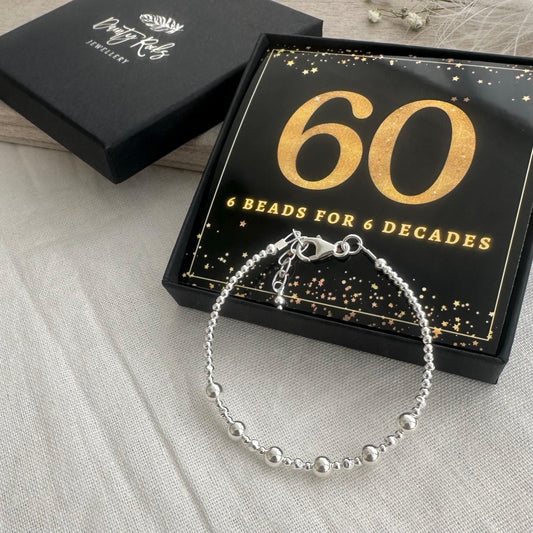 60th Birthday Gift 6 Beads 6 Decades Bracelet, Jewellery Gift for Her 60th in Sterling Silver