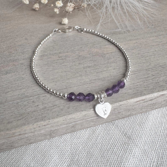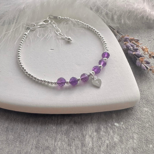 Personalised Amethyst Bracelet, Dainty February Birthstone Jewellery in Sterling Silver