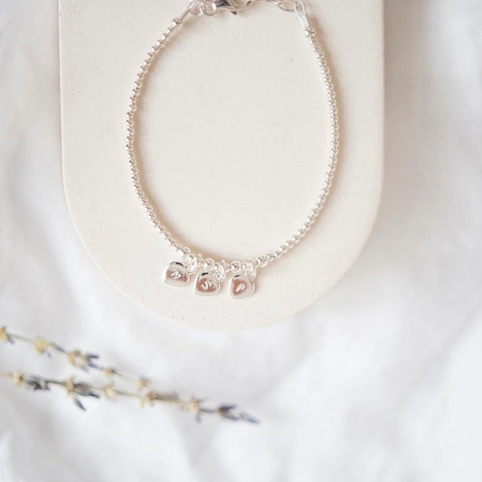 Tiny Hearts Beaded Family Initials Bracelet in sterling silver, Very dainty Personalised Monogram Jewellery Gift for Women