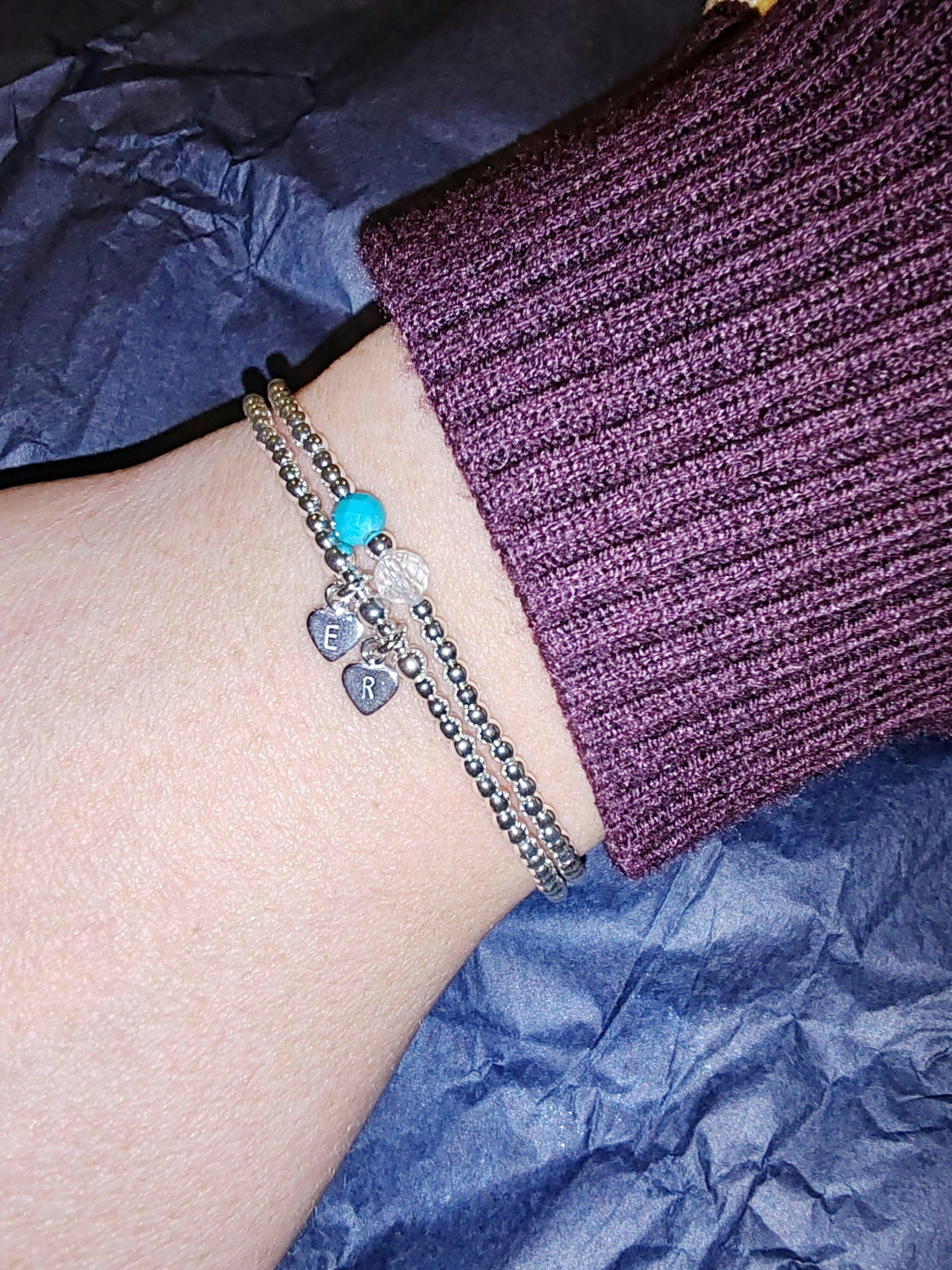 My daughter had a her first baby this month (December) and is getting married next year, so wanted to get some stacking personal bracelets to celebrate son/family/wedding. I emailed asking if the open heart and one initial heart could be increased to two initial hearts ( her and hubbie) I was informed that this was no problem and everything arrived beautifully packaged promptly. They all look together, very dainty and exactly what I wanted. Super individual gifts for loved ones.