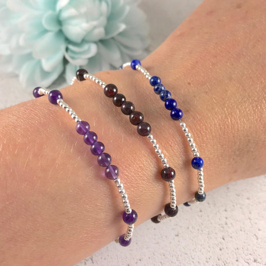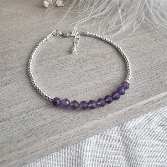 Dainty Amethyst Bracelet in Sterling Silver, February Birthstone