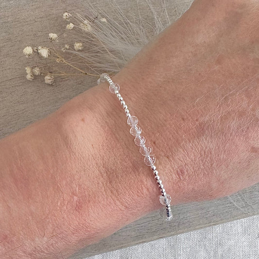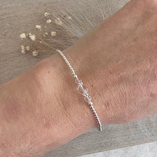 Dainty Rock Quartz Bracelet in Sterling Silver, April Birthstone