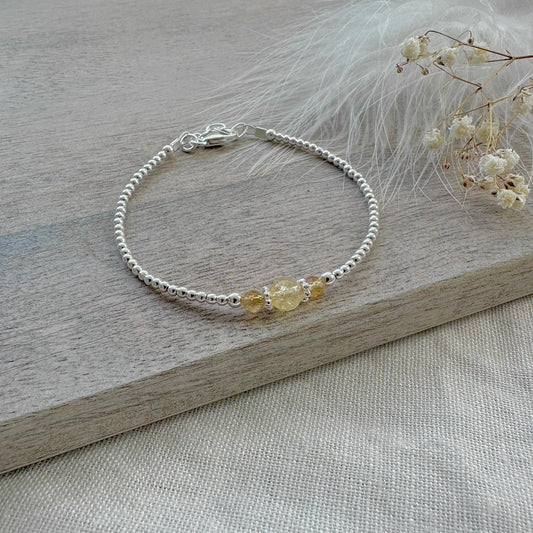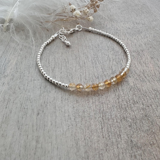 Citrine November Birthstone Bracelet, dainty stacking bracelet in sterling silver