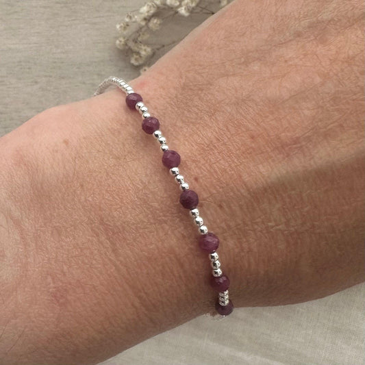July Birthstone Sterling Silver Ruby Bracelet