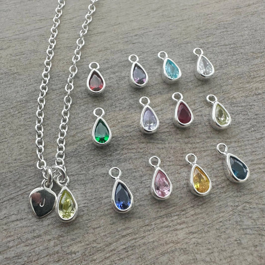 Birthstone Necklace with Cubic zirconia teardrop charm, Birthday gift for women