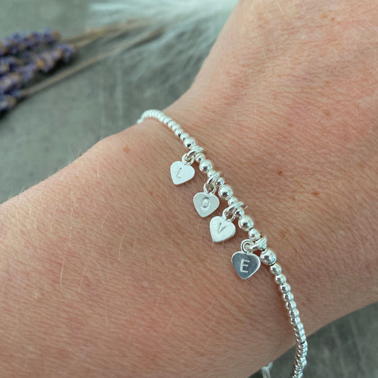 Tiny Family Initial Bracelet , Personalised Dainty Sterling Silver Jewellery