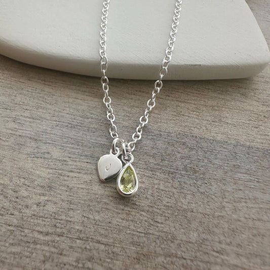 Personalised Cubic zirconia Birthstone Initial Necklace, Birthday gift for women