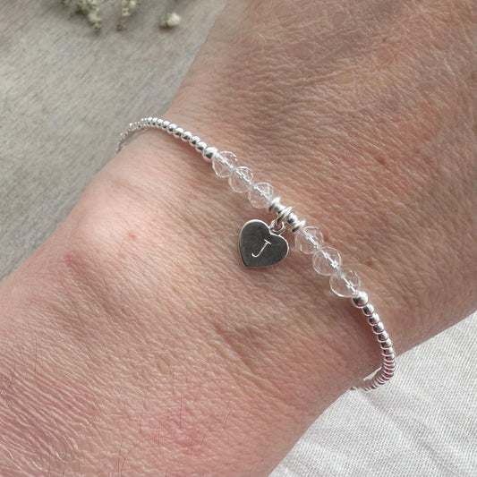 Personalised April Birthstone Bracelet, Dainty Rock Quartz Bracelet in Sterling Silver