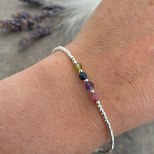 Sterling Silver Family Birthstones Bracelet, , Gift for Mum