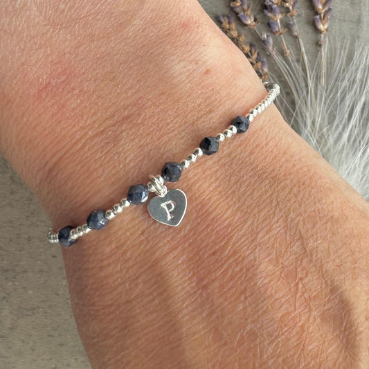Personalised Sappphire Bracelet, Dainty September Birthstone Jewellery in Sterling Silver