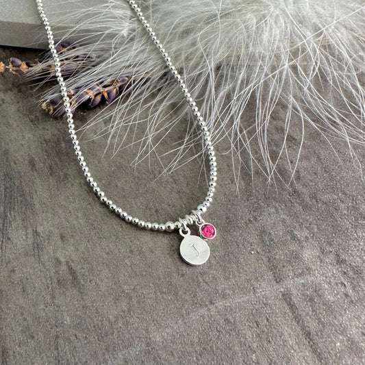 Dainty Personalised Initial Birthstone Necklace in Sterling Silver