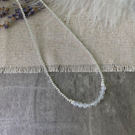 Thin Moonstone and Sterling Silver Bead Necklace, June Birthstone