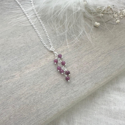 Dainty Ruby Cascade Necklace Sterling Silver, July Birthstone made to order