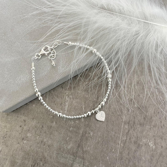 Delicate Open Heart Personalised Bracelet with initial in sterling Silver