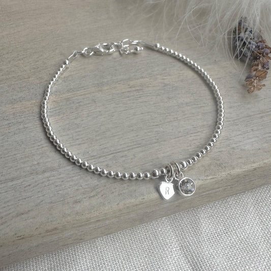 Dainty April Birthstone Initial Bracelet, Personalised Cubic Zirconia Sterling Silver