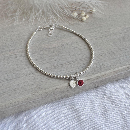 Personalised Garnet Bracelet, , Dainty January Birthstone Jewellery in Sterling Silver
