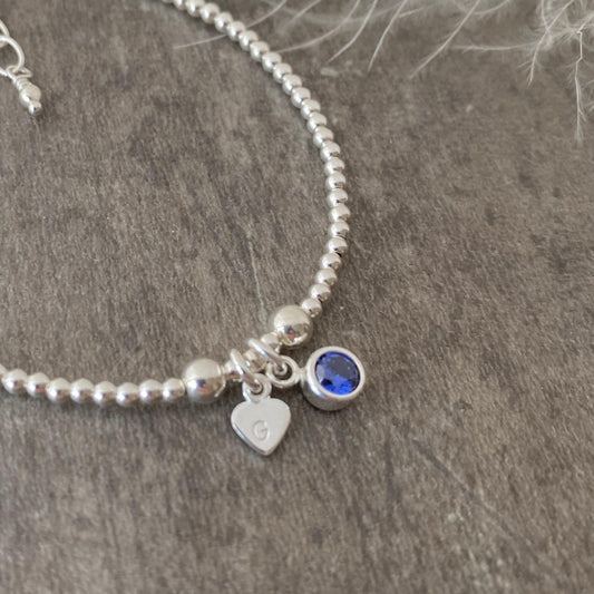 Dainty September Birthstone CZ Initial Bracelet, Personalised Jewellery