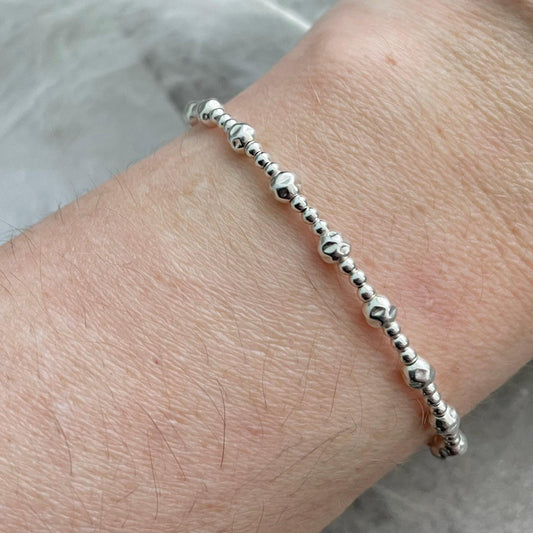 Textured Layering Bracelet, 4mm sterling silver bead bracelet