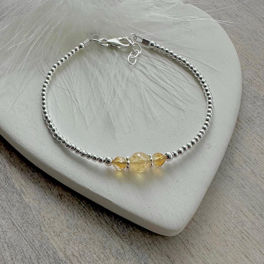 Personalised Citrine Bracelet, Dainty November Birthstone Jewellery in Sterling Silver