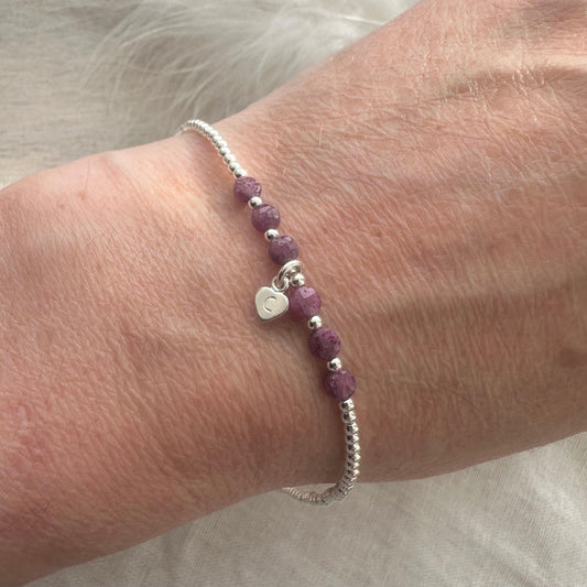 Dainty Personalised Ruby Bracelet, July Birthstone Jewellery in Sterling Silver