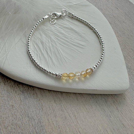 Dainty Rock Quartz Bracelet in Sterling Silver, April Birthstone