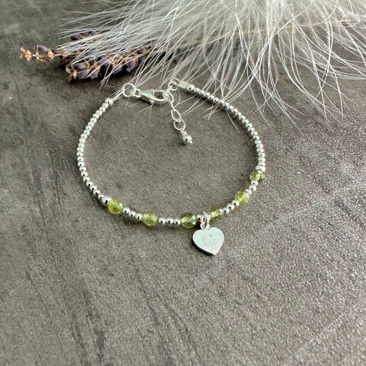 Personalised Peridot Bracelet, Dainty August Birthstone Jewellery in Sterling Silver